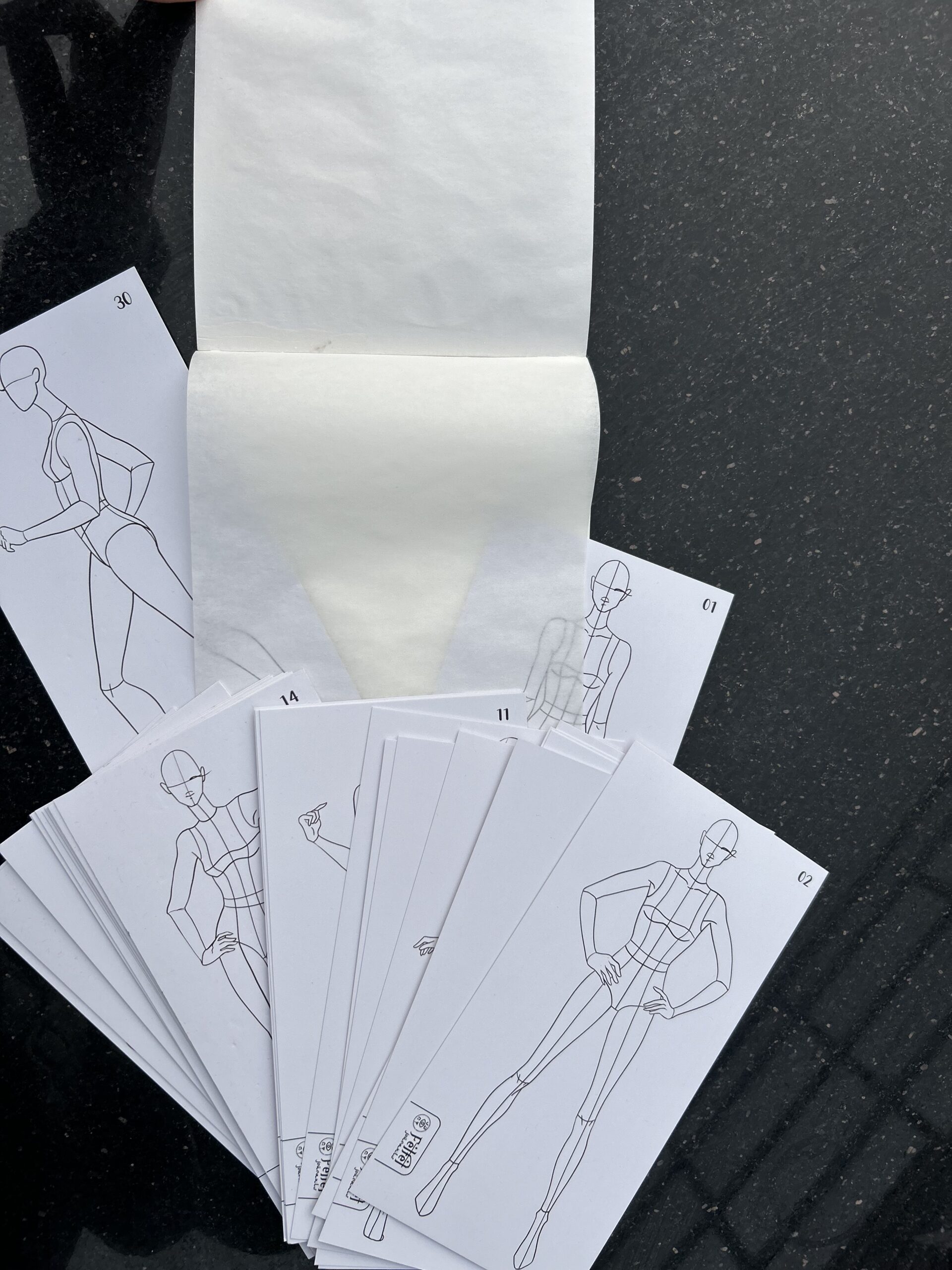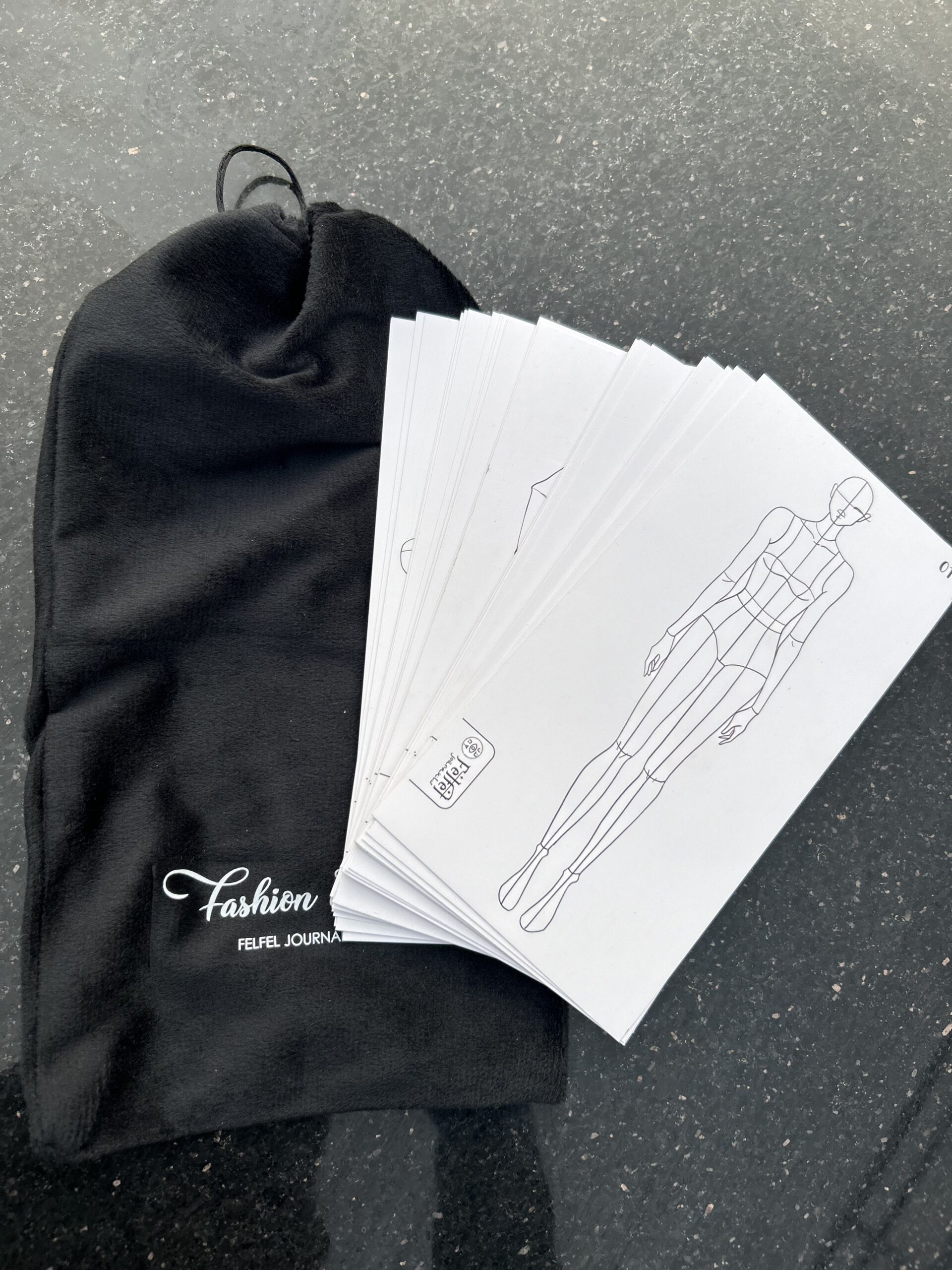 ( ورق كانسون سادة 350 جرام -24 ورقة وجه واحد -3 وضعيات مانيكان جاهزة للرسم عليها بتفاصيل التصميم)